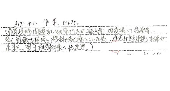 弊社では作業終了時にアンケートを頂いておりますが、そこに寄せられたお客様の評価コメントやわざわざ弊社宛に頂いた御礼メールが何よりの栄養、明日への活力となります。頂いた御言葉を糧に、飽くなき最高品質のサービスを提供すべく発奮して参ります。