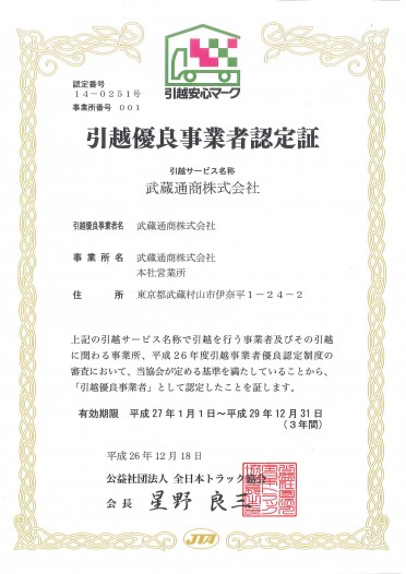武蔵通商株式会社は令和3年4月22日付、国土交通省「運転者職場環境良好度認証制度(働きやすい職場認証制度)」の一つ星認定を取得しました。「働きやすい職場認証制度」は自動車運送事業者(トラック・バス・タクシー事業)の運転者の労働条件や労働環境を第三者機関が評価・認証する制度です。国の「自動車運送事業の働き方改革の実現に向けた政府行動計画(平成30年5月30日決定)」を受けて、自動車運送事業の運転者不足に対応する為の総合的取り組みの一環として創設されました。