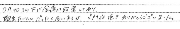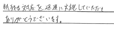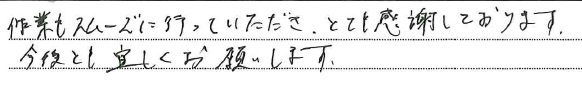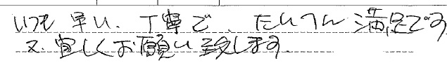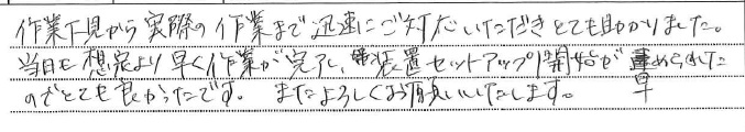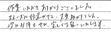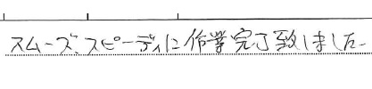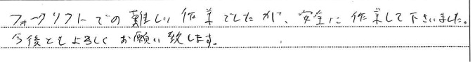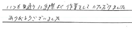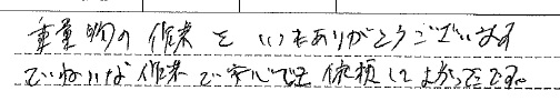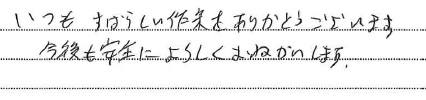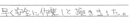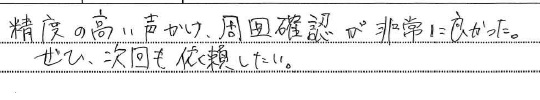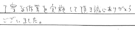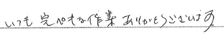 弊社では作業終了時にアンケートを頂いておりますが、そこに寄せられたお客様の評価コメントやわざわざ弊社宛に頂いた御礼メールが何よりの栄養、明日への活力となります。頂いた御言葉を糧に、飽くなき最高品質のサービスを提供すべく発奮して参ります。