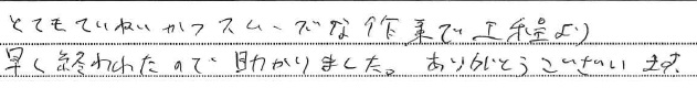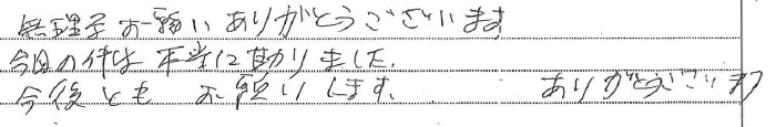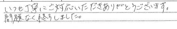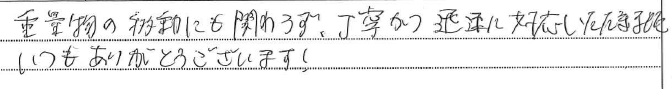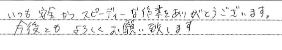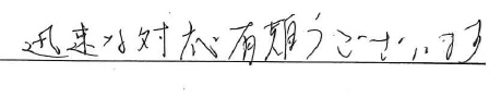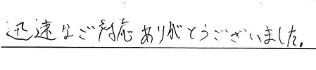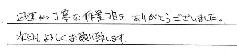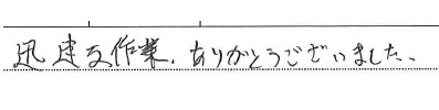 <p>迅速かつ丁寧な作業頂きありがとうございました。</p>