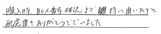 <p>搬入時、BOX番号確認まで待って頂いたりと</p>