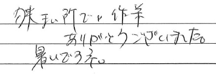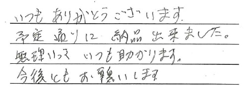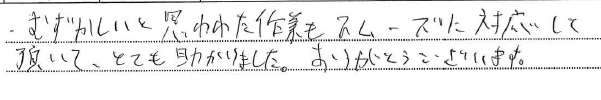 <p>スムーズに作業して頂きありがとうございました。</p>