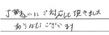 <p>ごていねいに対応して頂きありがとうございました。</p>