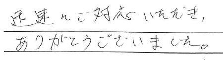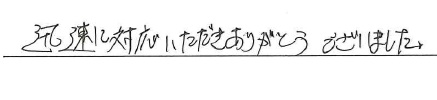 <p>遠い所 迅速な対応ありがとうございました</p>