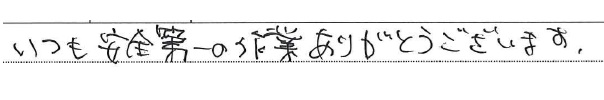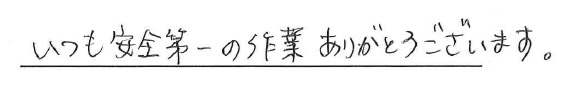 <p>いつも安全かつスピーディーな作業をありがとうございます。</p>