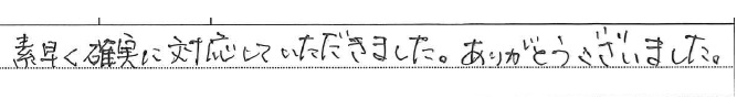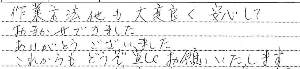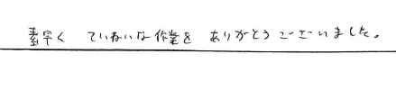<p>迅速かつ丁寧な作業でした。ご協力頂きありがとう</p>