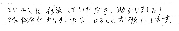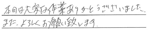 <p>丁寧な作業ありがとうございました。</p>