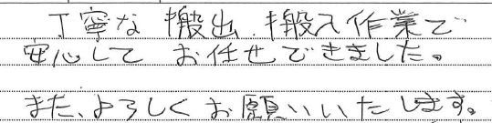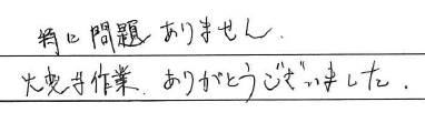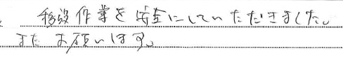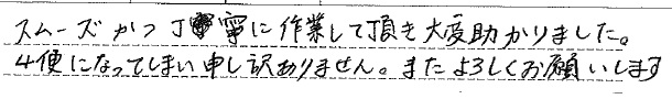 <p>スムーズかつ丁寧に作業して頂き大変助かりました。</p>
