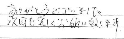 <p>またお願いしたいと思います。ありがとうございました。</p>