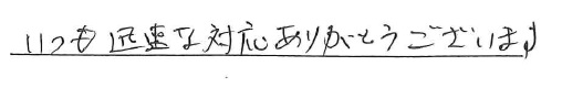 迅速な対応ありがとうございました