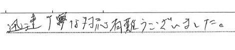 <p>迅速丁寧な対応有難うございました。</p>