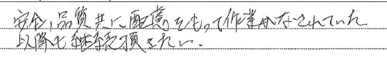 <p>安全、品質共に配慮をもって作業がなされていた</p>