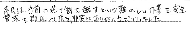 <p> 移設作業を安全にしていただきました。</p>