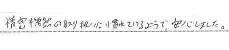 <p>精密機器の取り扱いに慣れてるようで、安心しました。</p>