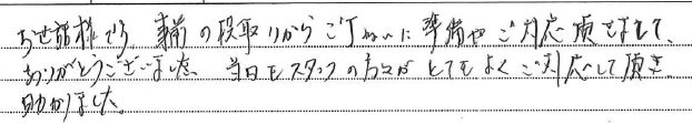 <p>ありがとうございました。当日もスタッフの方々がとてもよくご対応頂き</p>
